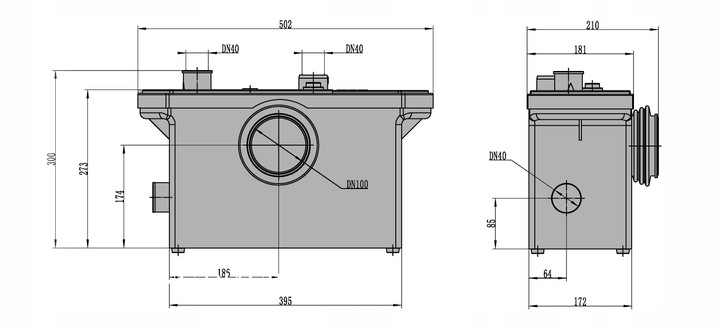 | შეერთებების რაოდენობა (შეყვანები) | 3 (1 x 100 მმ, 2 x 40 მმ) |