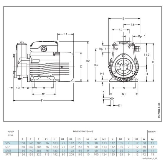 დახურულკორპუსიანი ცენტრიფუგული ტუმბოები CALPEDA NM50-12S-C